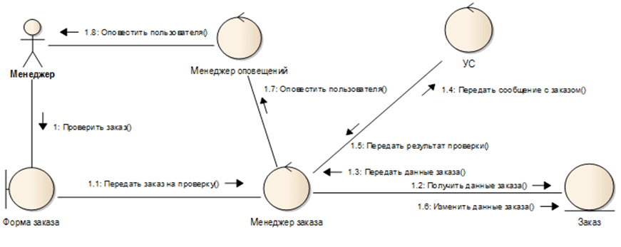 Взаимодействие между отдельными компонентами Системы лучше отражает диаграмма коммуникаций. Данный вид диаграмм предназначен в основном для моделирования отношений между объектами.