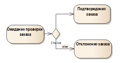 Если при срабатывании перехода возможно ветвление, в имени перехода используется сторожевое условие. Сторожевое условие (guard condition) всегда записывается в прямых скобках после события-триггера и представляет собой некоторое булевское выражение. В общем, случае из одного состояния может быть несколько переходов с одним и тем же событием-триггером, при этом целевое состояние будет зависеть от того какое из сторожевых условий примет значение «истина». Также имя перехода может содержать выражение действия (action expression). В данном случае указанное действие выполняется сразу при срабатывании перехода и до начала каких бы то ни было действий в целевом состоянии. В общем случае выражение действия может содержать целый список отдельных действий, разделенных символом «;». При создании диаграммы состояний для отдельных компонентов Системы выражение действия записывается на одном из языков программирования, который предполагается использовать для реализации модели. Помимо основных узлов, на диаграмме состояний могут использоваться, так называемые, псевдосостояния – вершины которые не обладают поведением, и объект не находится в ней, а «мгновенно» ее проходит. Под псевдосостояниями на диаграмме состояний понимаются, знакомые уже нам начальное и конечное состояние. Начальное состояние обычно не содержит никаких внутренних действий и определяет точку, в которой находится объект по умолчанию в начальный момент времени. Конечное состояние также не содержит никаких внутренних действий и служит для указания на диаграмме области, в которой завершается процесс изменения состояний в контексте конечного автомата. Узлы ветвления и объединения аналогичны узлам на диаграмме деятельности. Основная цель данных подсостояний показать параллельную работу подавтоматов. На диаграмме состояний обычно данные подсостяония используются распараллеливания переходов в композитных состояниях, о которых речь пойдет позже. После срабатывания перехода моделируемый объект одновременно будет находиться во всех целевых состояниях этого перехода. Варианты принятия решений на диаграмме состояний могут быть показаны также как и на диаграмме деятельности с помощью узла выбора. При этом переход в состояние выбора должен быть триггерным и содержать имя события. Переходы из псевдосостояния выбора в целевые состояния должны содержать сторожевые условия. Переход, который должен срабатывать, если ни одно из условий не примет значение «истина» должен содержать метку «else». Также узел выбора на диаграмме состояний может быть заменен узлом соединения. Данное псевдосостояние имеет достаточно свободную семантику и предназначено для соединения нескольких переходов. В отличие от псевдосостояния выбора узел соединения может иметь несколько входящих переходов и несколько исходящих переходов, т.е. он может принимать значение логического выражения «или». На диаграмме могут быть представлены как простые состояния, так и сложные состояния. Сложные или составные состояния (composite state) включают в себя вложенные подсостояния (слайд 10). Декомпозиция сложного состояния может осуществляться как на основной диаграмме, так и отдельно, при этом на основной диаграмме следует использовать элемент с пиктограммой декомпозиции. Составное состояние может содержать два или